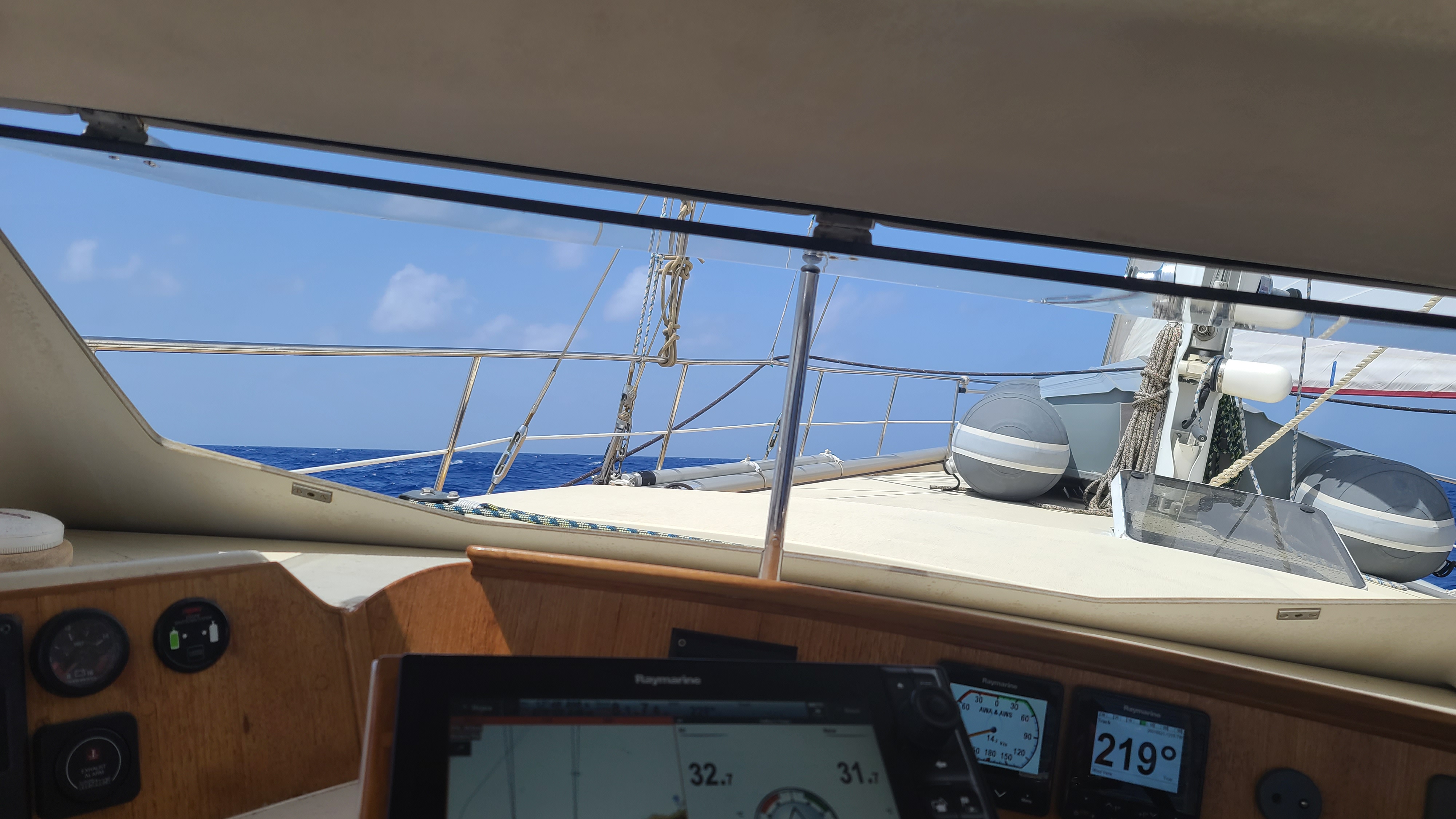 Having setup my autopilot to its wind vane mode due to these changing winds, I woke up many times at night realizing we were sailing in the wrong direction, like towards Cuba, as the autopilot was doing its work – following the wind!