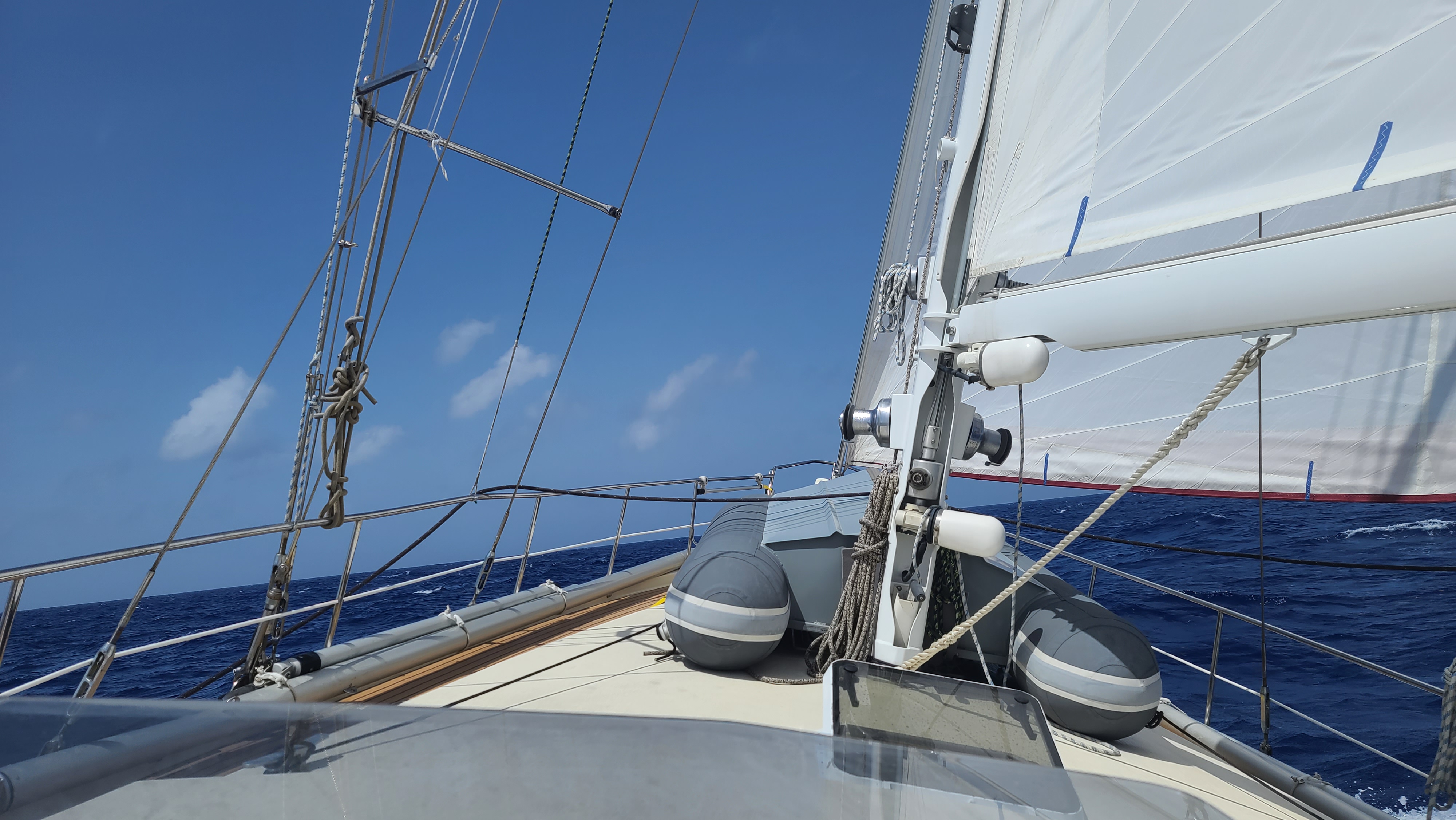 After more than 6 days of sailing, on May 19th at about 1 AM, we finally reached the northern entrance of the Windward Passage, a strait between the eastern end of Cuba and the western cap of the island of Hispaniola, home to Haiti and the Dominican Republic. Surprisingly and contrary to this passage’s fame of always being rough and windy, we encountered no wind and quiet seas! Over the next day, it got so bad that we had to just motor!