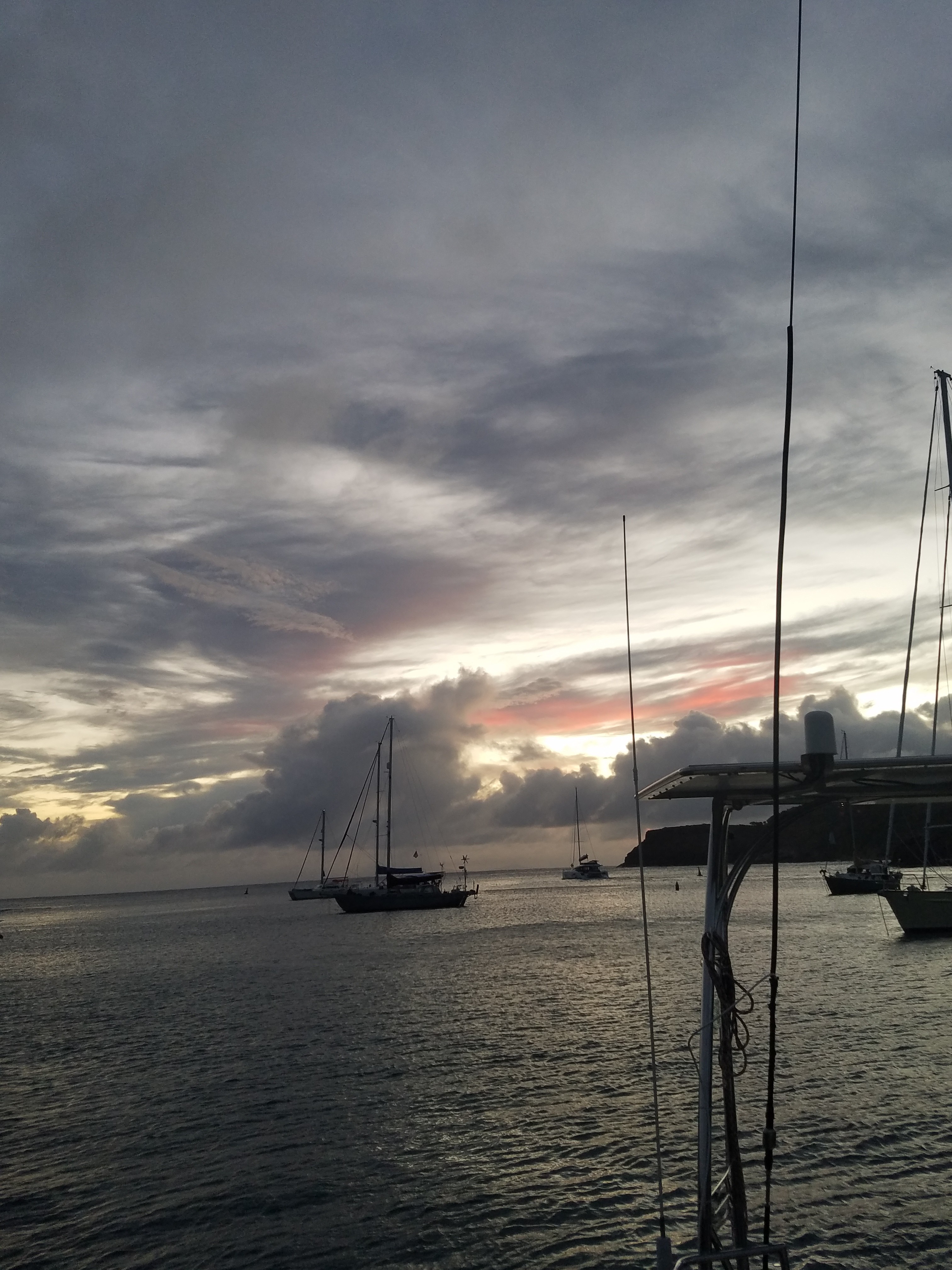 We just sailed out of the English Harbour with the Island of Antigua still in our view.