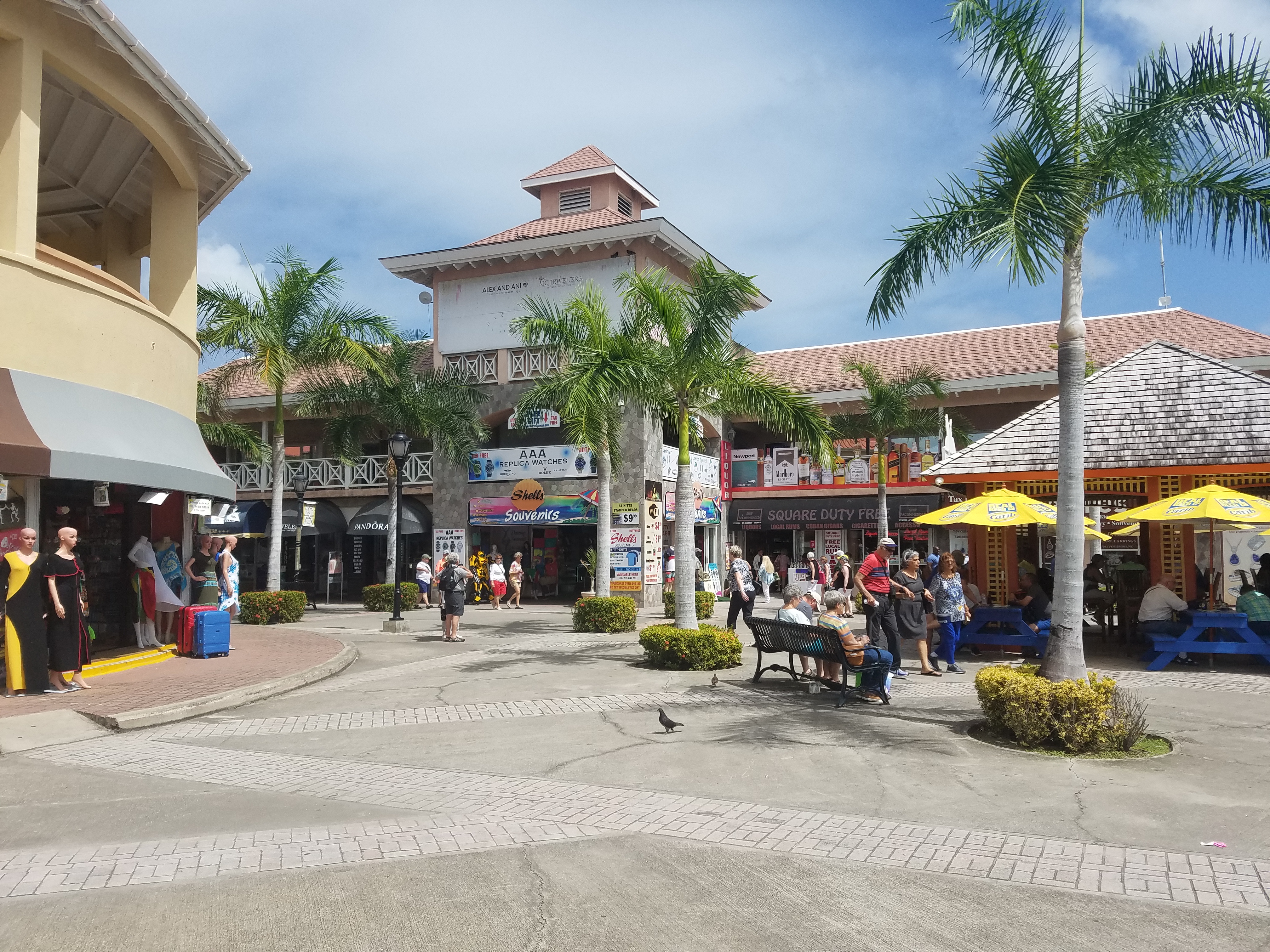 The next morning, we sailed off on a course for Saint Kitts, which is somewhat more interesting than Nevis with respect to boating and tourism in general. Its main town, Basseterre, which is also a port of entry, has a pretty expansive cruising ship terminal which unloads droves of tourists each day, keen mostly on shopping at the nearby pedestrian mall. It is somewhat gaudy, full of Duty Free stores selling virtually everything and anything.