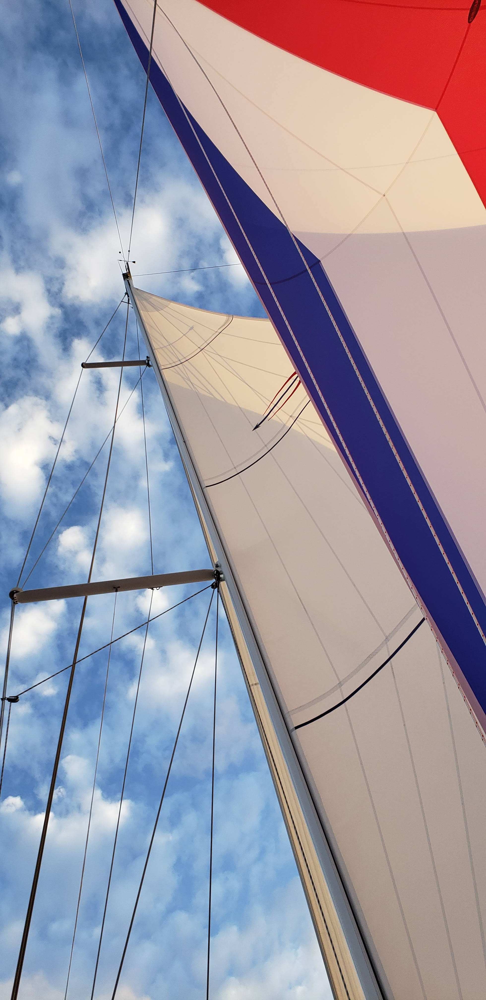 Within moments of leaving the marina and setting sail, our boat was immediately flanked on both sides by a pod of dolphins (video left). They jumped and swam alongside us for practically an hour while we gained speed and made adjustments to our sails. We took it as a good sign for our journey ahead!