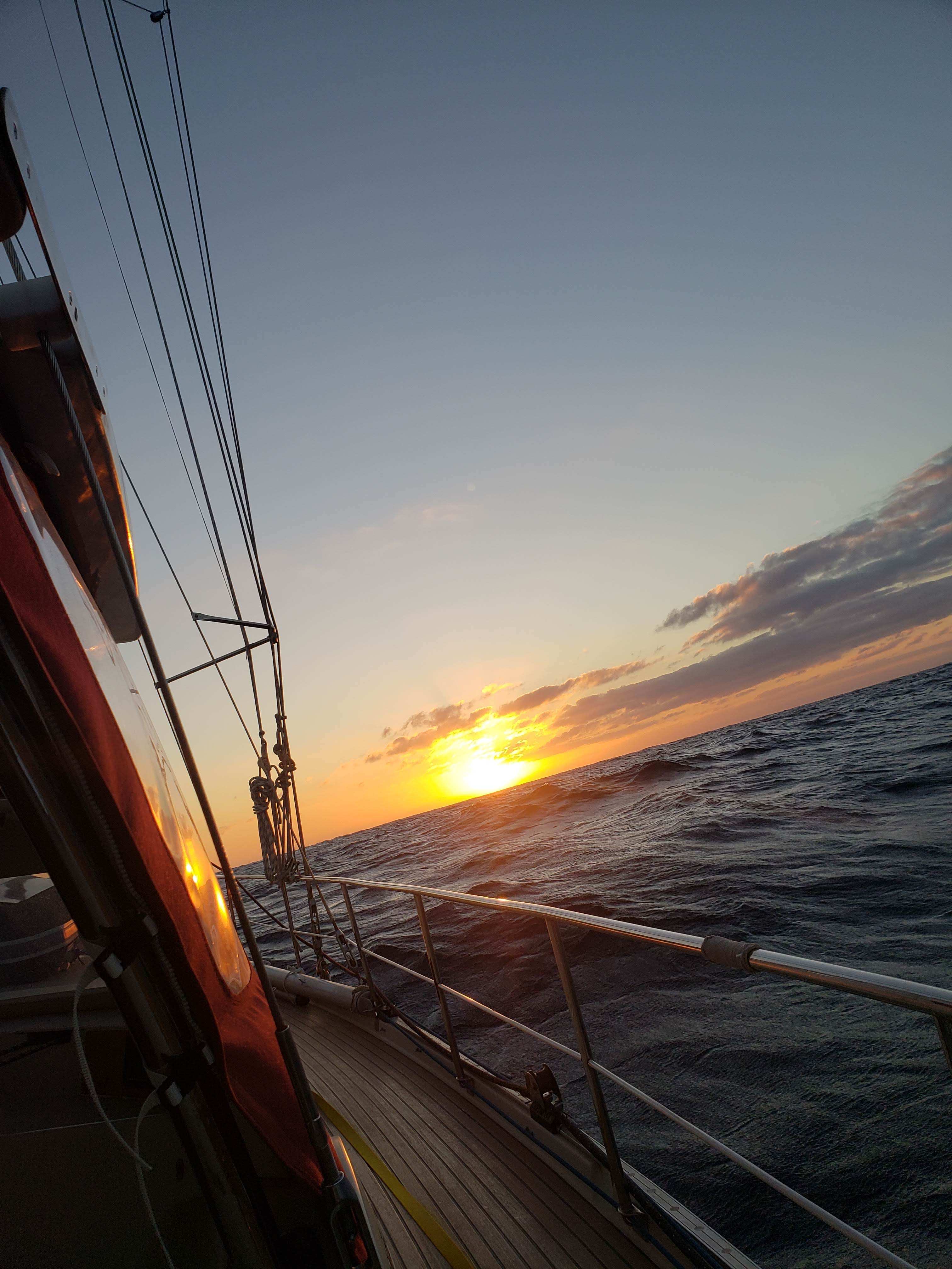 As our trip was winding to a close, we reflected on the last three weeks. Though we were missing some aspects of land (particularly certain foods like TexMex and Olive Garden!), we really appreciated our time on the water. It’s rare that one can have such a long break from the hustle and bustle of life – work, responsibilities outside of the boat, technology, etc. With no service on the ocean aside from our satellite phone, we really got to unplug. Seeing the Atlantic Ocean in all her splendor was something we’ll never forget as well. The ocean can change weather in a matter of seconds from slow wind to 40+ knots of wind. Every sunset we saw was beautiful and unique. Some days it was calm and orange and other days, the whole sky was rosy pink. At night, there were a few hours between the sun going down and the moon rising when all you could see was millions of stars above you and glowing bioluminescent plankton in the water outside the boat.